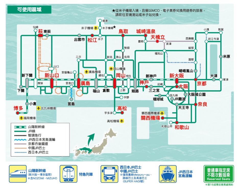 【12歲或以上】山陽&山陰地區鐵路周遊券7日券