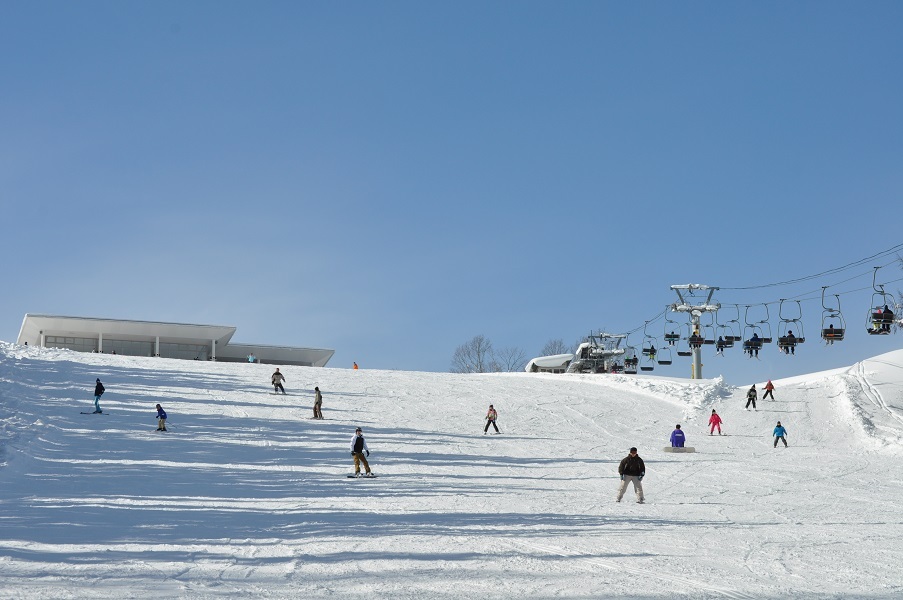 Yu-yu 滑雪區的特色是坡度平緩,小朋友也能放心滑雪,一旁還設有休憩小屋;Airside 滑雪區則是十分開闊的雪道。