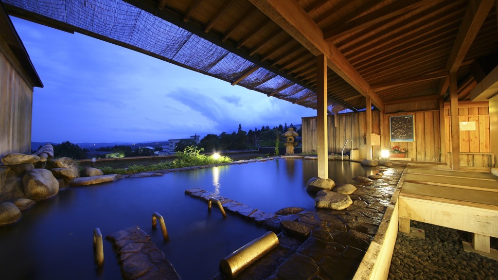 綿延不斷的雲海和照映在水面上的美麗夕陽,還有這裡的夜間點燈,景色全都美到令人窒息。客房內備有露天浴池,泡在露天浴池內眺望到的風景也是一絕。
