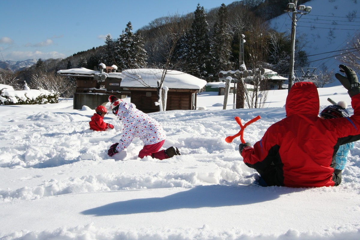 揖斐高原滑雪場入口左側就是一個名為「Chibikko 雪之廣場」的兒童專區。平坦的場地開放大家自由玩雪,例如堆雪人、搭雪屋等等,讓親子能共度歡樂的時光。