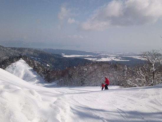 從山頂附近看到的琵琶湖景色更是一絕!雪道坡度也相當平緩好滑。