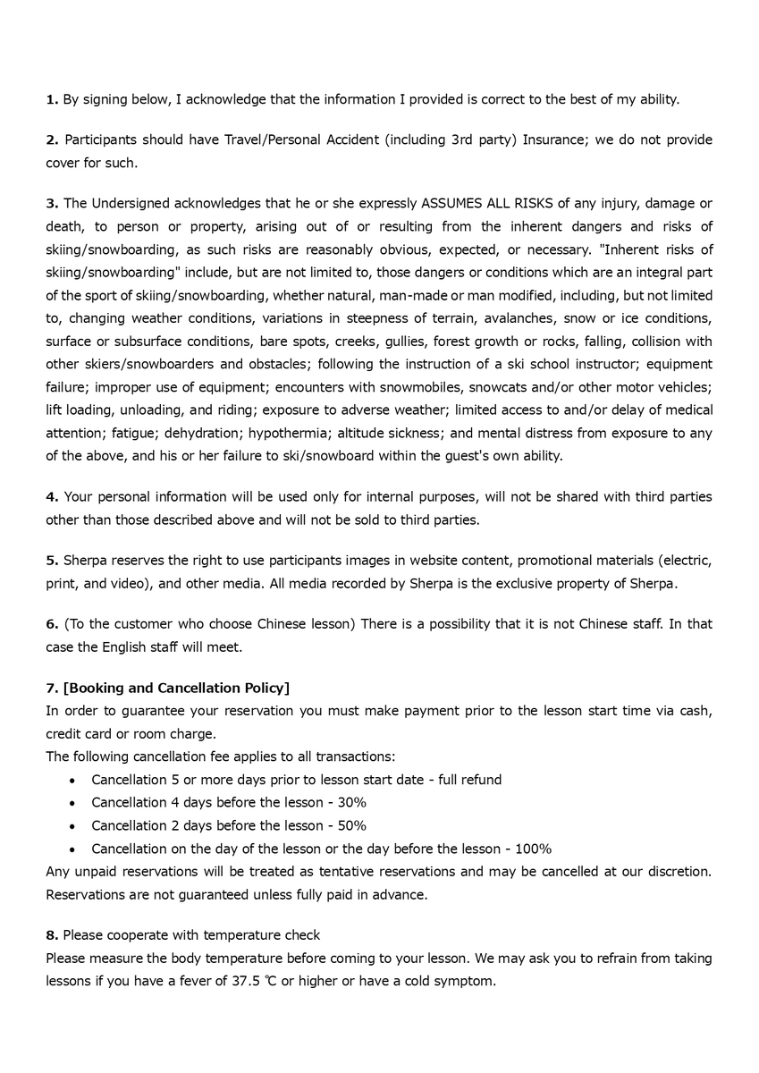 ※如透過完美行滑雪預約,相關疑問請洽完美行株式會社。