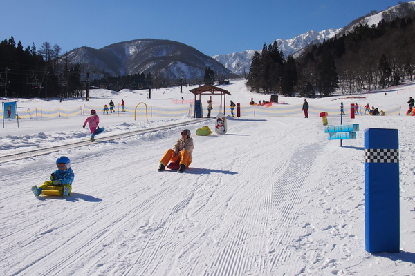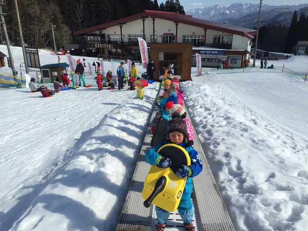 STEP UP LAND的50公尺雪上自動步道可無限次數搭乘。還設有雪盆雪道、雙板滑雪道(JPY1,000)