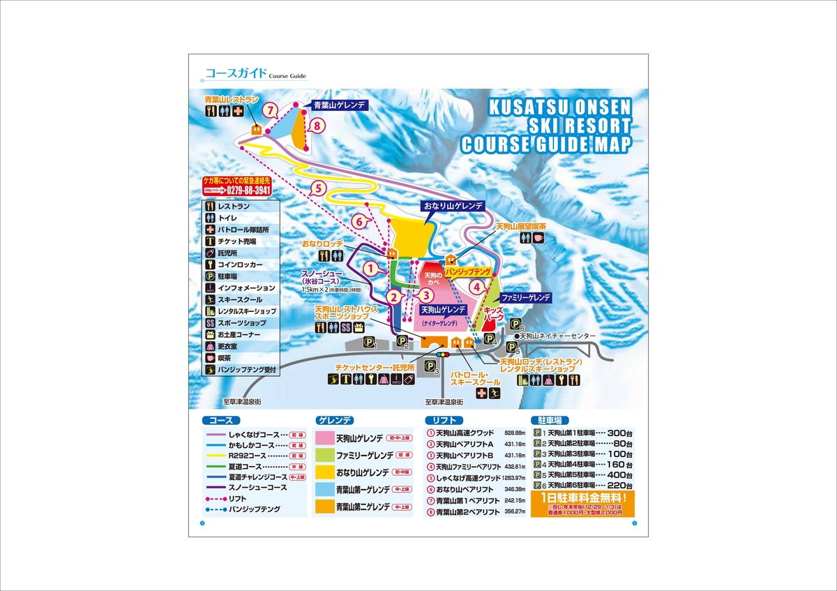 滿滿的雪量、滿滿的樂趣與歡笑!豐富活動與特色體驗玩不完!可線上預約滑雪套組租借服務。無論大人或小孩,都能參與各種趣味十足的活動。設有長達3公里的林間雪道,以及最大坡度30度的高階者雪道。除了滑雪活動外,還有刺激的戶外活動,像是空中飛索「BanZip TENGU」,以及高達10公尺的巨大鞦韆「SKY SWING」。滑雪結束後,當然不能錯過著名的草津溫泉,讓名湯療癒平時的疲勞。
