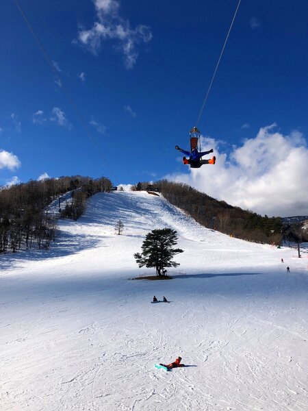 白雪遍佈四周,充滿著歡樂,到處都是笑容!除了各種活動和極具魅力的行程,還充滿了各種資訊!甚至可網上預約滑雪套裝、租借托兒所。從小童到成人,所有人都能參與的活動十分豐富。可在3公里的林間滑雪道,最大斜度30度的熟練者滑雪道中享受滑雪的樂趣。此外,不進行單板或雙板滑雪的遊客也能盡情暢玩在空中滑翔的「BanZipTENGU」,及高達10米的巨型鞦韆「SKY SWING」等遊玩設施。當然,在滑完雪後,請在著名的溫泉草津溫泉一洗日常的疲勞。因應天狗山休息室裝修工程,部分設施將暫停開放,暫定於2025年12月完工。